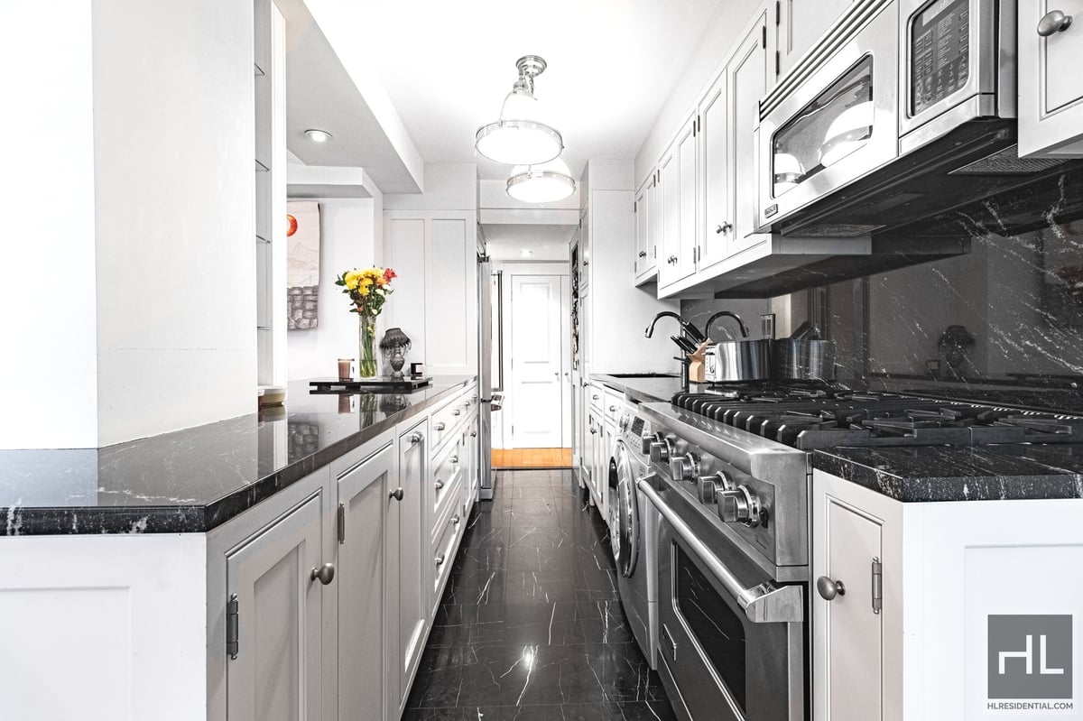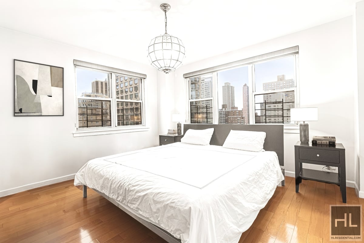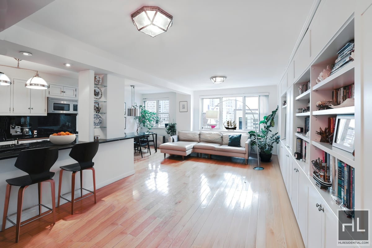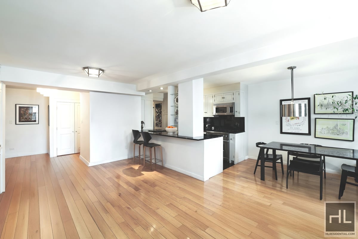 Perched high on the 17th floor of a premier full-service cooperative, Apartment 17F is a turnkey, impeccably renovated two-bedroom, two-bathroom haven offering eastern and northern exposures and abundant natural light throughout the day. The apartment can easily be converted to a three-bedroom or sizeable home office.
