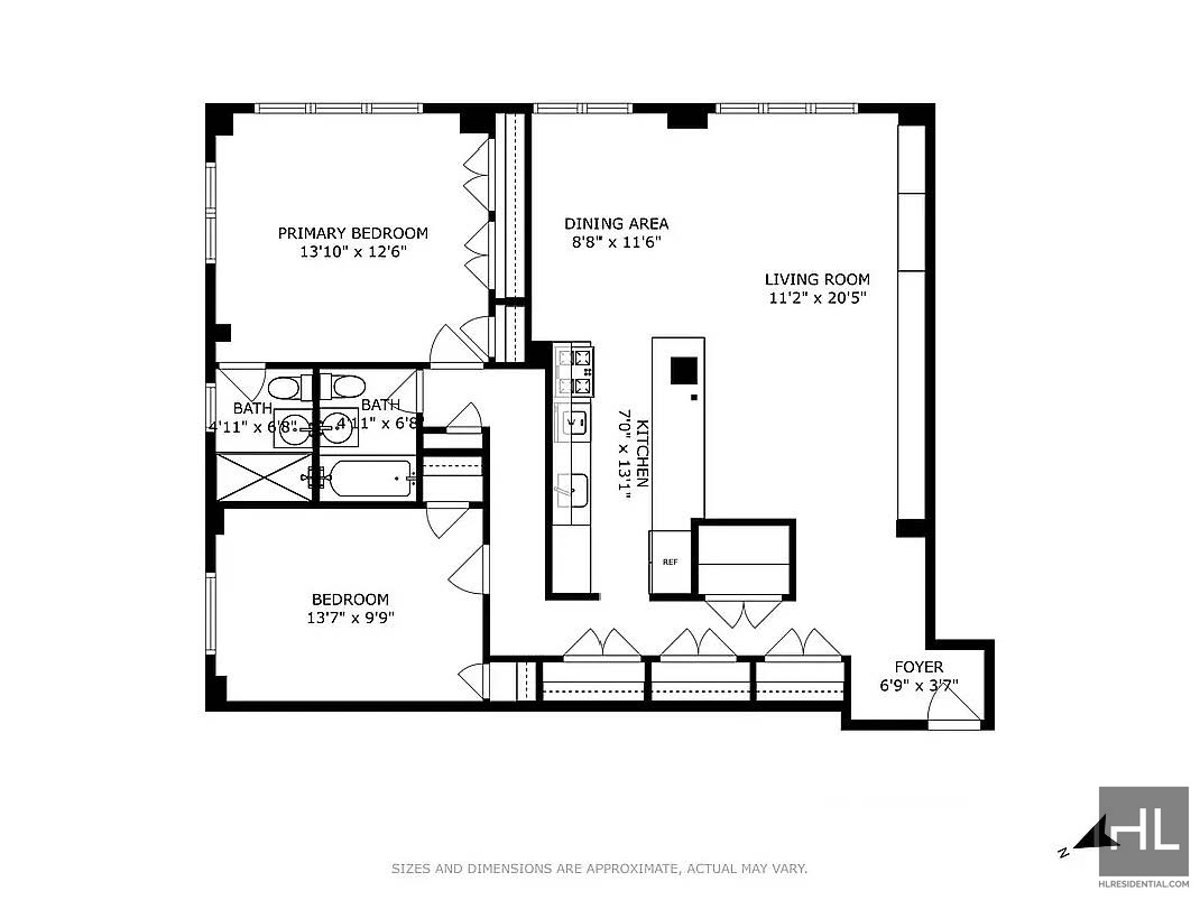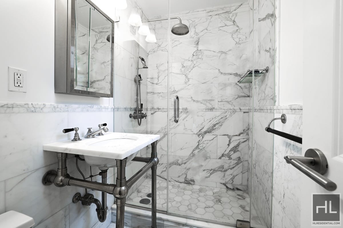 Both bedrooms offer generous proportions, excellent closet space, and serene atmospheres. The two luxuriously appointed marble bathrooms feature Lefroy Brooks fixtures and refined finishes. Additional highlights include beautiful hardwood flooring throughout, custom PTAC temperature controls, custom closets.